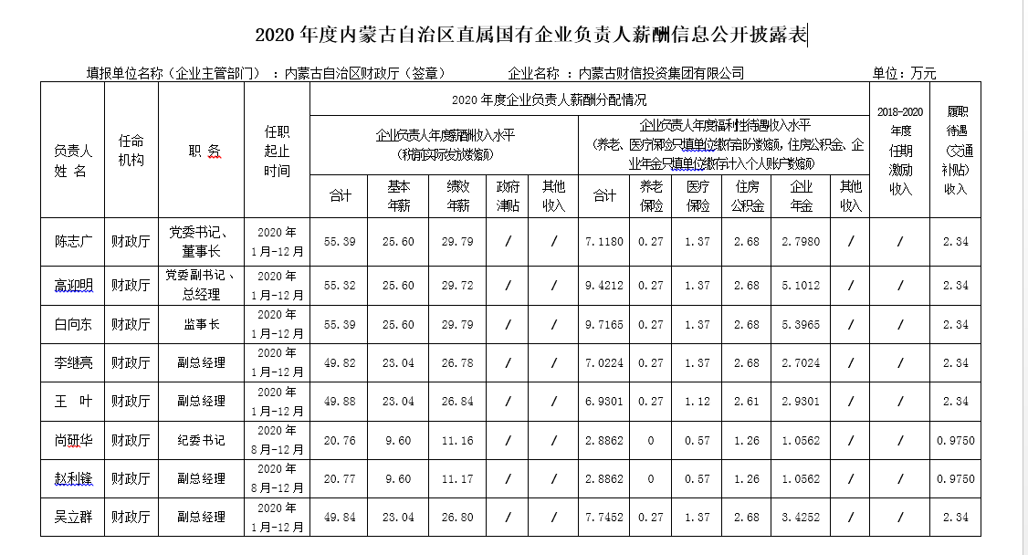 2020年度內(nèi)蒙古自治區(qū)直屬國有企業(yè)負(fù)責(zé)人薪酬信息公開披露表